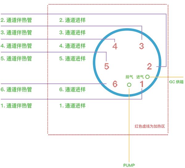 基于六通道阀的气路原理,可实现最多6个通道的样气全热采集,对于一些需要监测数个采样点的现场,可节约成本,实现无交叉污染的多通道的在线连续采样。