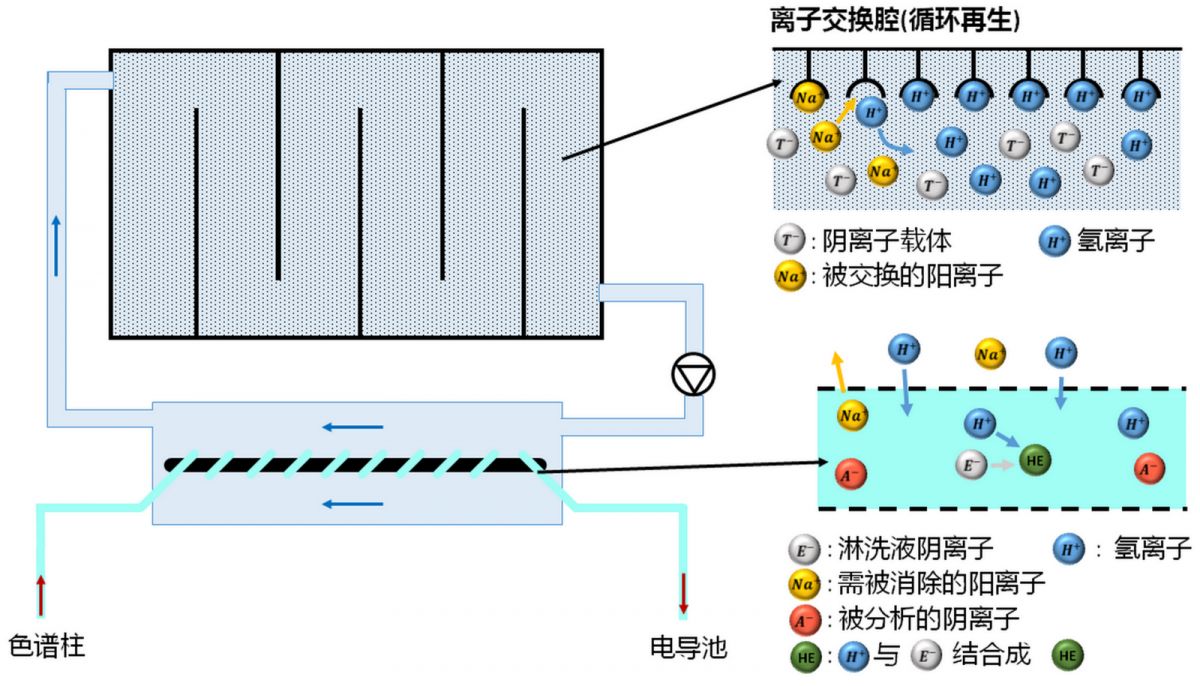 Sykam(赛卡姆)离子色谱基于最新的管式自动连续再生膜抑制器,样品和标准品分析均经过抑制器同一通道进行检测,分析时无需外加硫酸进行轮流再生。
