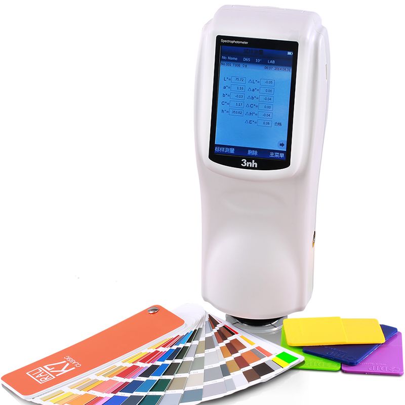 NS820分光测色仪采用了组合LED精密分光的原理,将光线按一定波长间隔分开,然后采用若干组传感器阵列进行感光分析。NS820分光测色仪的精度更高,对任何颜色都非常敏感,除了准确测量Lab值、dE值之外,还可以直接显示光谱反射率曲线,可以实现配色功能,也可以精确计算出各种色差仪公式的真正参数。