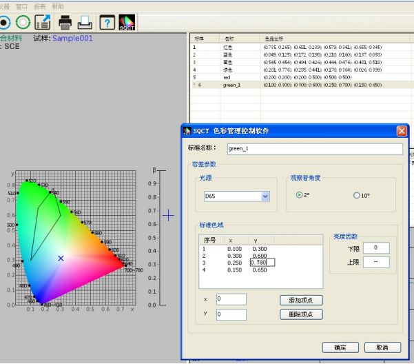 2.2判定样品的色度数据是否满足多边形-容差标样实例