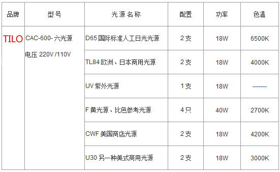 标准光源对色灯箱参数: