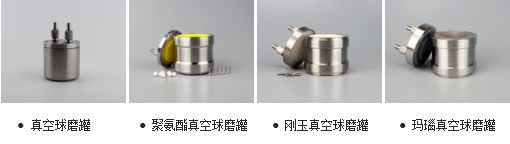 6种不同材质研磨罐可供选择