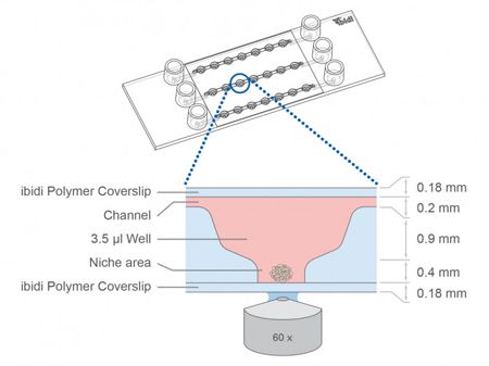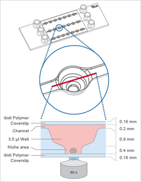 µ-Slide球体灌注是用于培养自由漂浮的3D聚集体的专用流动室。它由3 x 7平底孔组成,这些孔通过上方的通道连接。每个孔形成自己的壁,在此培养标本。