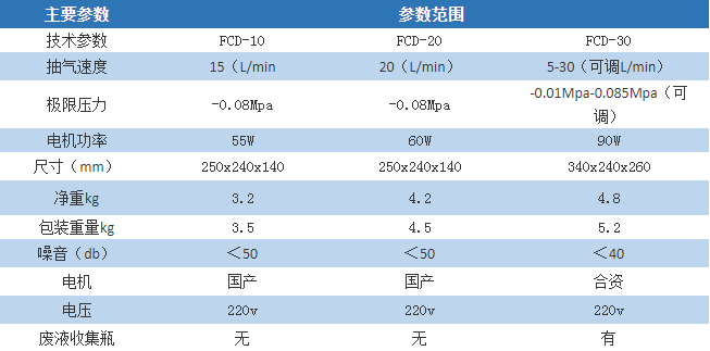 FCD-10无油真空泵是提高过滤效率,加强脱气效果的重要过滤配套设备。为保障过滤介质不被污染,一般均使用无油隔膜式真空泵,此类泵型是通过橡胶膜片的往返运动形成真空,其真空压力一般为0.08Mpa左右(单级),提高过滤速度关键是单位时间内的排气量,及真空泵的流量指标,在过滤量大、介质粘度高时颗粒堵塞滤膜情况下尤显突出。