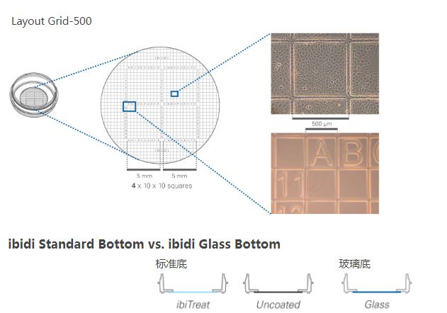 | 81166 | µ-Dish 35 mm,高壁,ibiTreat底部处理,500微米格子培养皿 | 60 |