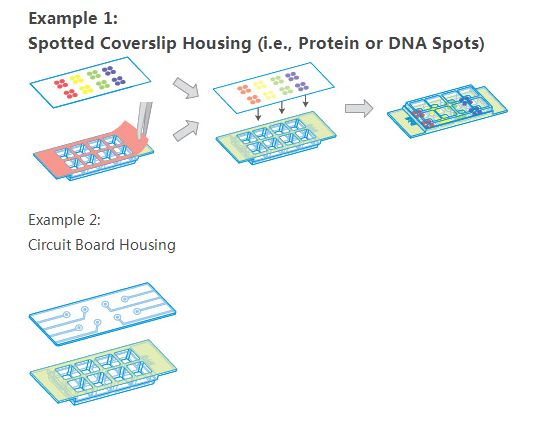 与一系列底部材料如塑料片,半导体芯片,电路板,玻璃盖玻片,玻璃培养片共同使用