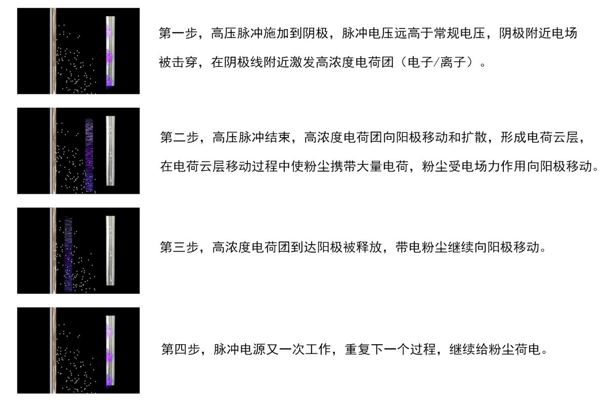 脉冲电源激发的电荷浓度为常规直流电源的几百倍,极大提高了粉尘的荷电量,保证了PM2.5微细粉尘充分荷电,从而大幅提高除尘效率,工程应用表明可减少粉尘排放50%以上。