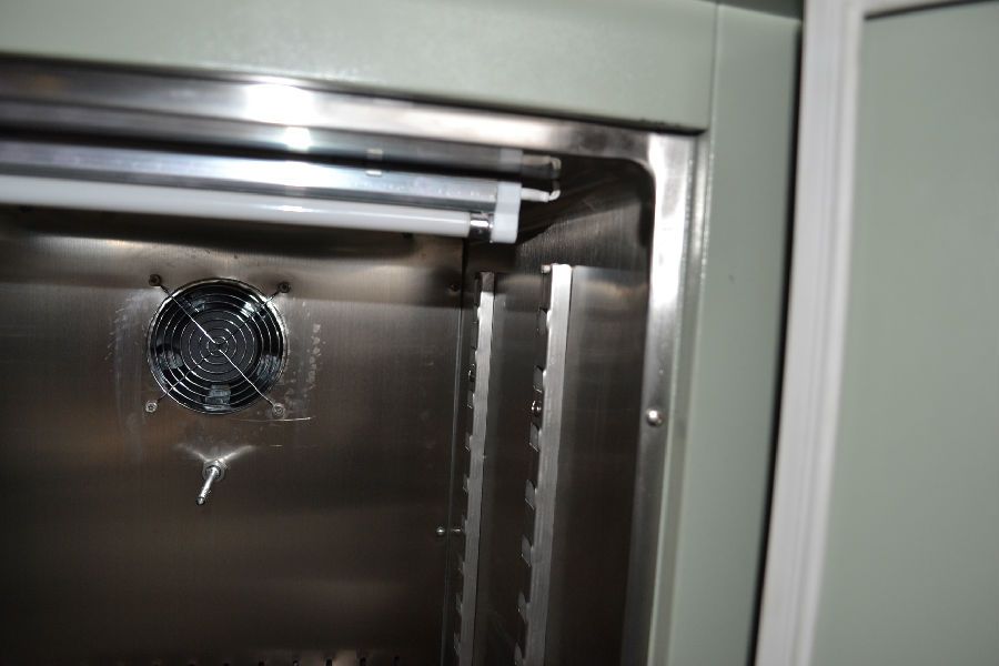 5、箱内照明灯,可观察箱内培养物(霉菌培养箱加配紫外灯和温度控制)。