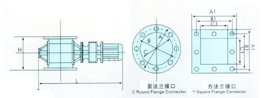 星形卸料装置又称卸料器、排料阀、旋转给料器、锁气阀、通常星形卸料的结构是由带有数片叶片的转子叶轮、壳体、密封件及减速器、电动机等组成。
