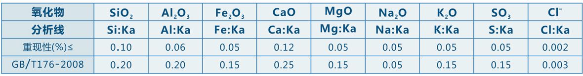 | 建筑材料/水泥 耐火材料/陶瓷 冶金矿产/采矿 金属材料 学术研究、教学 玻璃、石墨 土壤调查/元素分析 工艺控制 成分质量控制 成分检测检验设备 成分指令控制 | 仪器尺寸:800(W)×1000(D)×1720(H)mm 样品尺寸:Ф40mm 重 量:约450Kg 工作环境温度:15—30℃(需配置空调) 分析元素范围:Na-U之间任意10个元素 水泥标准通道配置:Si、Al、 Fe、 Ca、 Mg、 Na、 k、 S、 Cl、 p 钢铁标准通道配置:Si、Al、Fe 、Ti、Ca 、Mg 、S、Mn、P 、V 玻璃标准通道配置:Na、Mg、Al、Si、Fe、Ca、K、Ba、Ti 测量时间:60-400s 检出限:可达到0.1ppm 代表性元素分析精度:Si、Ca δn-1<0.025%;Fe、S、Al δn-1<0.012%;Na、Mg<0.015% 输入电源:AC220V~240V,50/60Hz 光路系统:多道多路分光器,流气正比单色器 样品送样系统:华唯专利的摇摆进样系统,带光闸和自旋功能 工作站:WdxAnalyzer V1 额定功率:3000W |