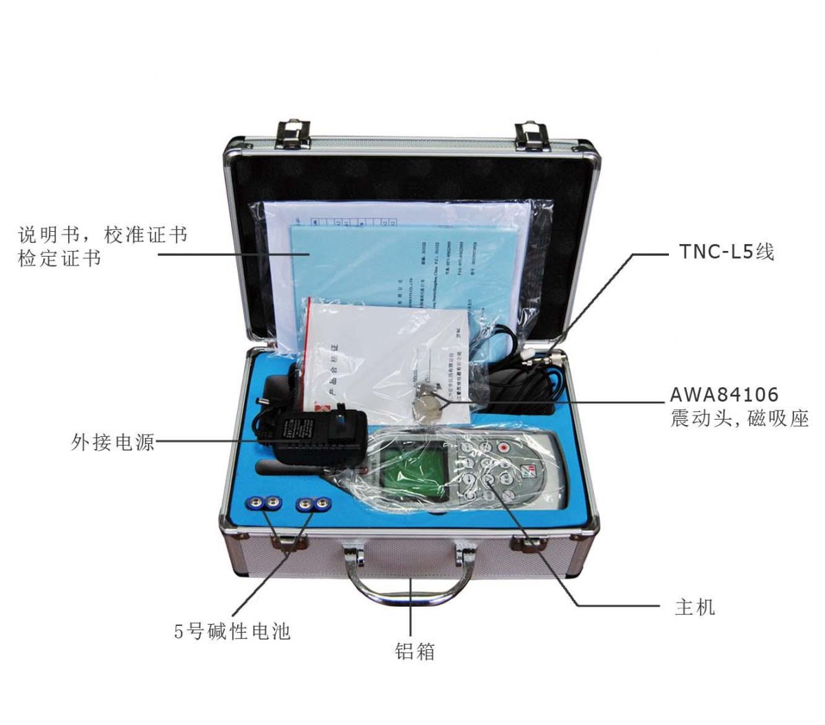 | 传感器 | AWA84106型压电加速度计,灵敏度:3pC/m/s2.当用户所配加度计的灵敏度不同时,测量范围也会随之不同 |