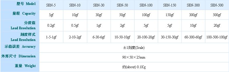 SEN系列指针式张力计适用于继电器接点压力、电子开关、微型开关、阀门、弹簧拉压力、刻度盘测量仪器主轴压力、自动电话设备接点和衔铁压力等机械压力、磁带录音机缓冲装置压力等接触点压力和张紧力的测试。