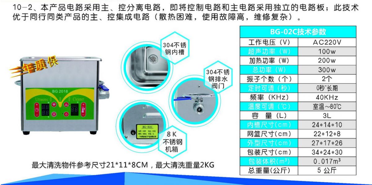 产品名称:BG-02C超声波清洗机