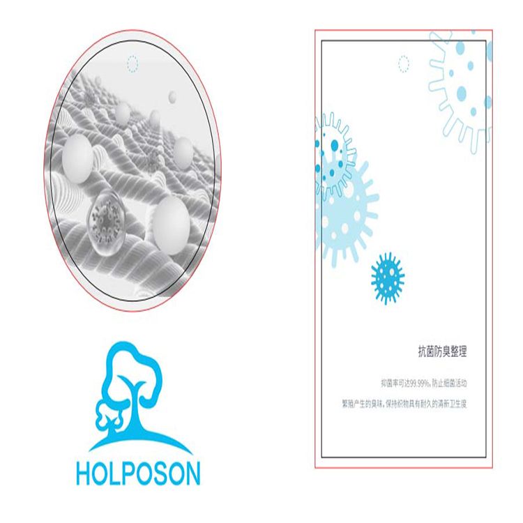 抗菌防臭整理剂HOLPOSON® CAPTAIN A-T是专注于纺织品抗菌防霉领域的防护功能材料,可以有效抑制大肠杆菌,白色念珠菌等细菌生长,符合美标AATCC100检测指标。适用纺织品有:涤纶,尼龙、腈纶,棉,粘胶及其混纺织物等。可应用在家纺、服装、袜子、窗帘、墙布、汽车内饰纺织、毛绒玩具等产品,赋予产品耐久的抗菌防护功能,使以上纺织品不容易因为滋生细菌而发霉变臭。
