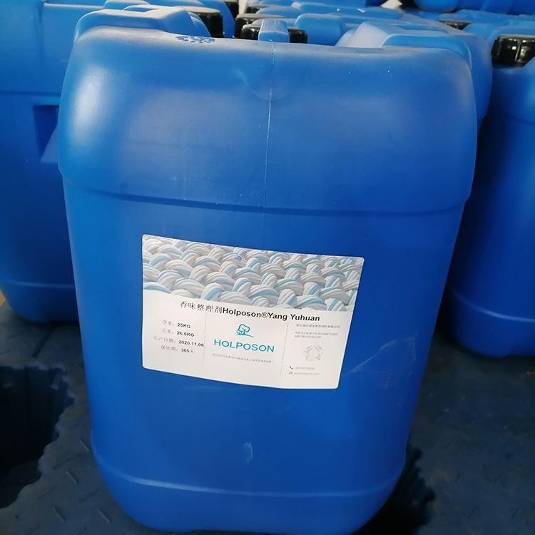 HOLPOSON® Yang Yuhuan 是加拿大归国留学博士与东华大学博士团队共同开发的高分子络合持久留香整理剂,产品是将绿茶,芦荟,薰衣草,玫瑰,茉莉,紫丁香,薄荷,艾草, 青苹、柠檬、草莓等香味的精油包覆在聚氨酯多孔微囊中制成的纺织品后整理用香味整理剂。纳米微胶囊包裹的香味整理剂处理的纺织品面料纤维可保持长久的留香时间,且安全环保,耐水洗可达10次以上。适用于:家纺、服装、车内饰、地毯、袜子、内衣、沙发面料等。