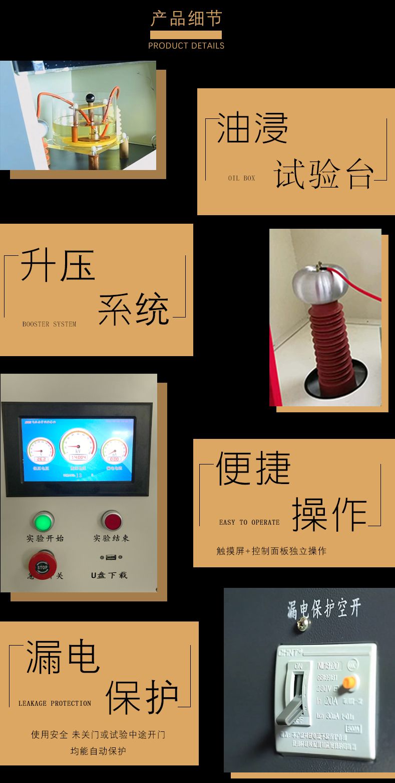 本设备主要由:升压系统(高压变压器)、测量系统、A/D转换器、放电系统、电极、油箱、电极定位架、计算机数据处理系统、软件等组成