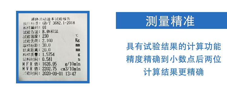 本仪器满足GB3682-2018标准中(质量法MFR;体种法MVR)的要求,其主要参数均满足ISO1133-2011标准 要求可用于聚乙烯、聚炳烯、聚苯乙烯、ABS、聚酰胺、纤维树脂、丙烯酸酯、聚甲醛、氟塑料、聚碳酸脂等各种材料的熔体流动速率的测定。