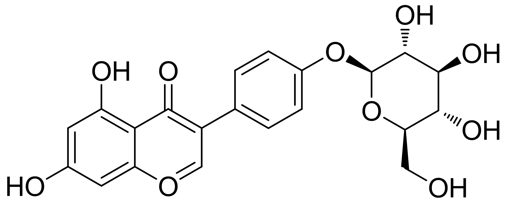| 别名 | 槐属甙;染料木素-4-葡萄糖甙;5,7-二羟基-3-(4-((2S,3R,4S,5S,6R)-3,4,5-三羟基-6-(羟甲基)四氢-2H-吡喃-2-基)氧基)苯基)-4H-苯并吡喃-4-酮 | |