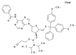 产品别名:N6-苯甲酰基-2'-脱氧-5'-O-(4,4'-二甲氧基三苯基)腺苷3'-(2-氰乙基-N,N-二异丙基)亚磷酰胺
