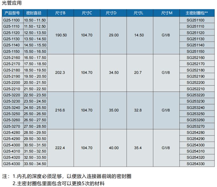 G25系列快速接头的规格与参数