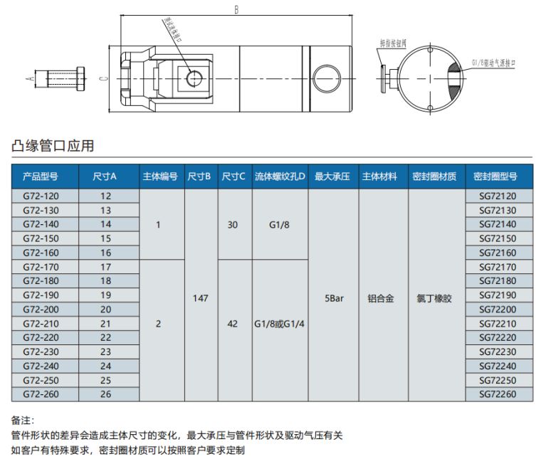 G72系列连接器是一款凸缘管或异型管口专用连接器,气压驱动,操作简单,特种航空铝合金主体在保证坚固性的同时,还能保证连接器的轻巧,极大地降低操作者的劳动强度。产品型号齐全,能适应各种尺寸的凸缘管密封应用。直通式设计,保证了产品高流量性能,无论是气体测试还是液体测试,都能适应。