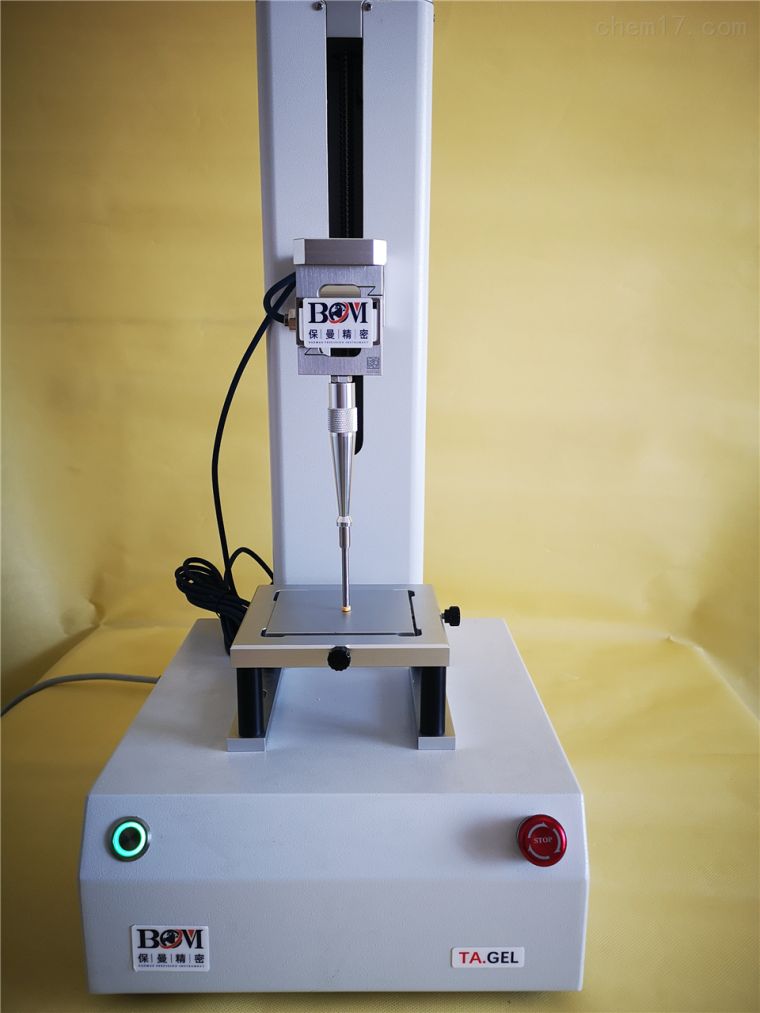 2、仪器参数:测试结果显示精度:0.01g;位移精度:0.01mm;测试臂移动距离:280mm;检测速度:0.01~25 mm/s;数据采集率:不低于500组/秒,每组4个通道同时读取;