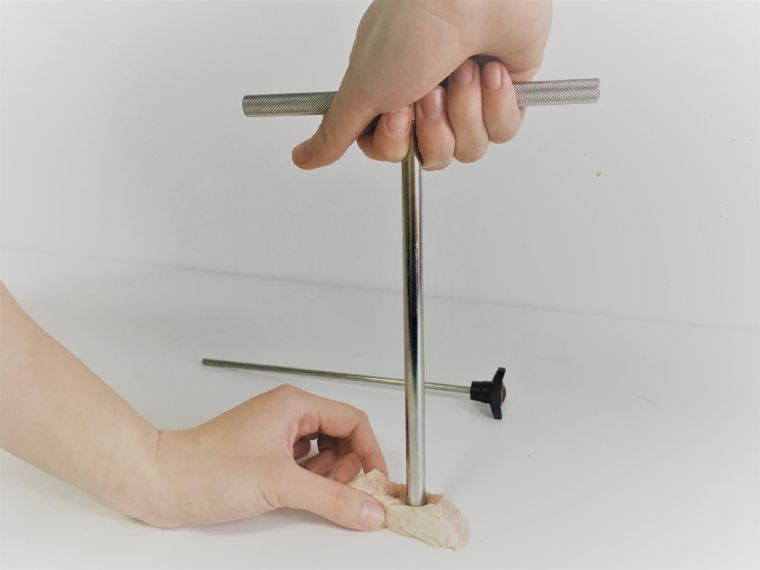 测定肉的嫩度需要取样,取样用到的肉质取样器直径在1.27cm,是一种圆形钻孔器的形状。可用于猪肉、牛肉、羊肉、鸡肉、鱼肉等等肉制品的取样测定。在利用质构仪测量肉嫩度时,我们常常没有定量的取样工具,而有了这款取肉器,取肉将不再是一件困难的事。国家农业行业标准NY/T1180-2006 肉嫩度测定中用到的取样器就是这款直径为1.27cm的圆形钻孔器取样器