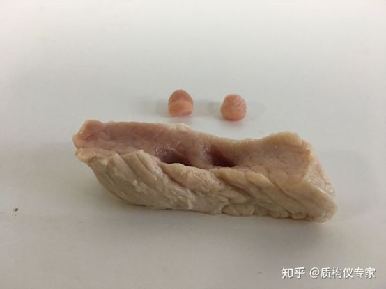 如上图所示,取样器取到的肉样是有一定规则和量度的,这样也就可以保证我们每次可以定量的取样,在做实验时方便又能快捷的测定出肉的嫩度,新鲜度等等特性。