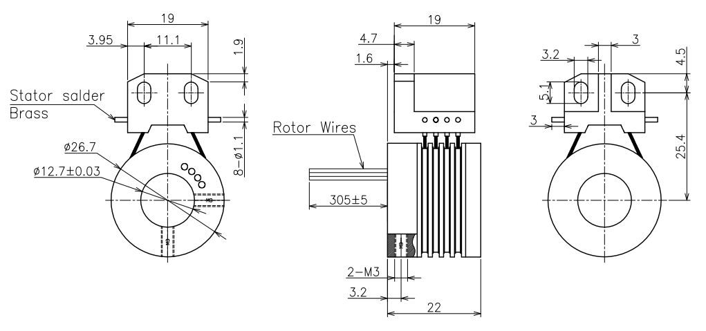 这是两半式滑环,或者我们可以称为纤维刷滑环,因为在这个设计中应用了纤维刷技术。易于维护,具有银内接触材料,