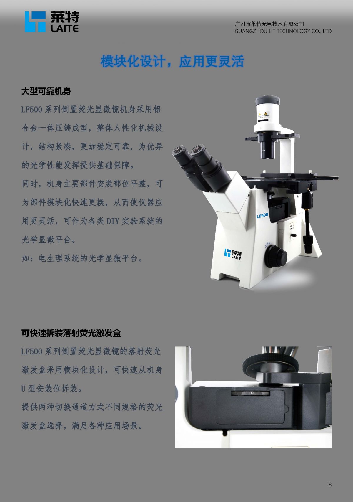 LF500高级倒置荧光显微镜 三大系列显微镜相机机身设计有专用的数码成像光学接口,提供连接显微镜相机进行数码成像观察。为客户提供300 - 2100万像素满足不同应用的显微镜相机及配套成像软件,连接电脑进行图像采集、保存、处理、分析等功能。