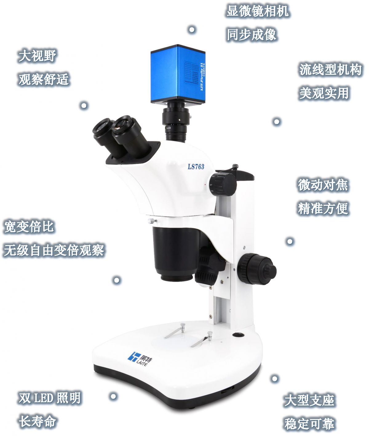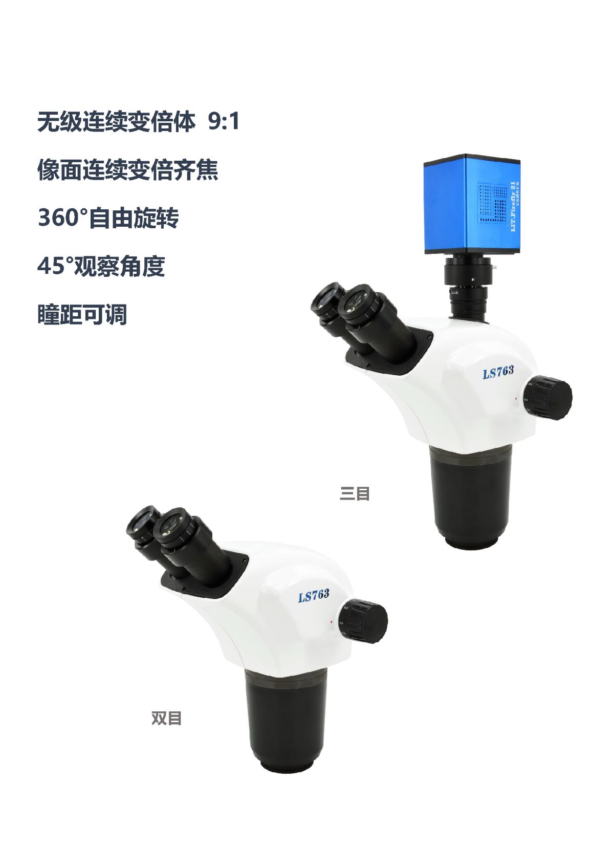 具有宽变倍比,可自由连续变倍观察,工作距离长,成像清晰,视场广阔