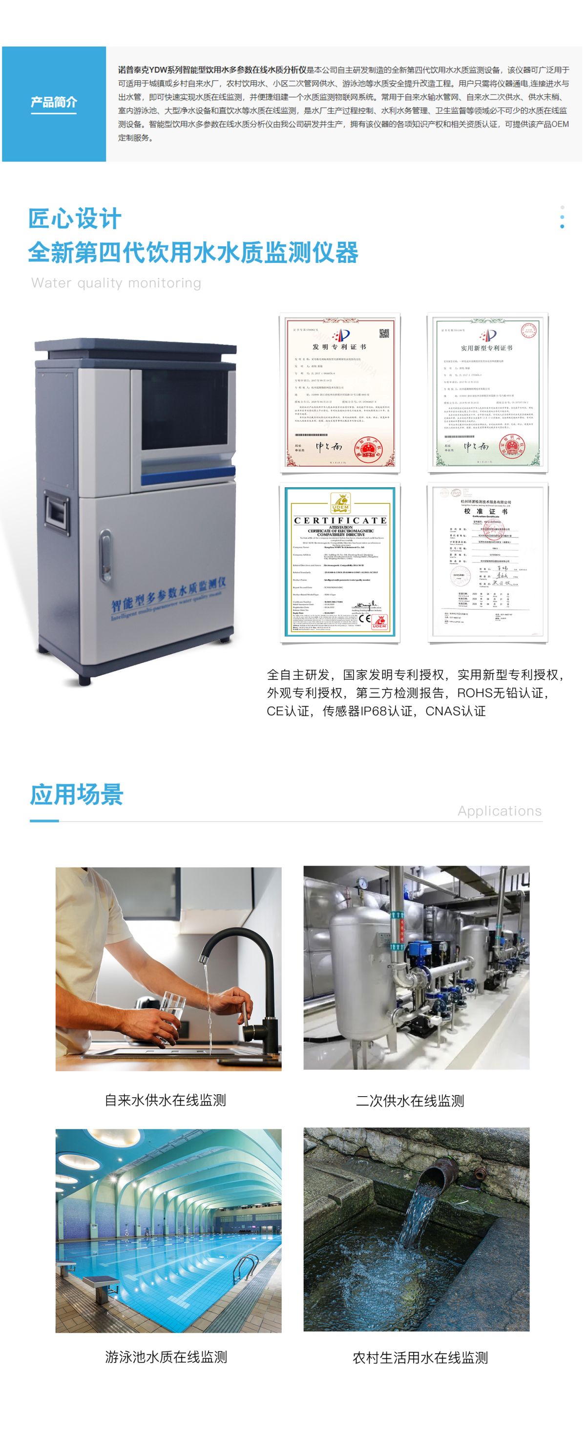 诺普泰克饮用水水质在线监测仪是本公司自主研发制造的全新第四代饮用水水质在线监测仪,该仪器可广泛用于可适用于城镇或乡村自来水厂,农村饮用水、小区二次管网供水、游泳池等水质安全提升改造工程。