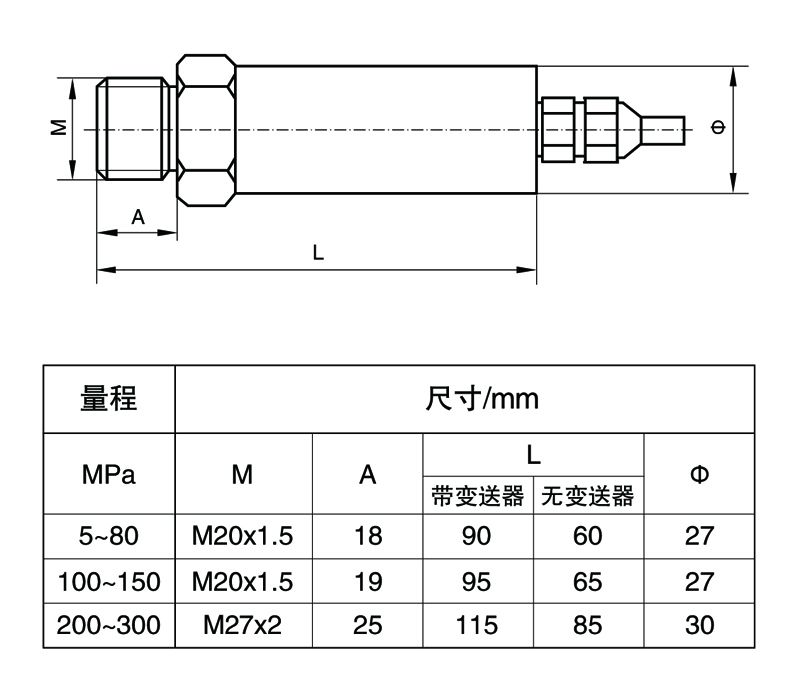 | 螺纹接口 Threaded Connection | M20×1.5或其它形式 |