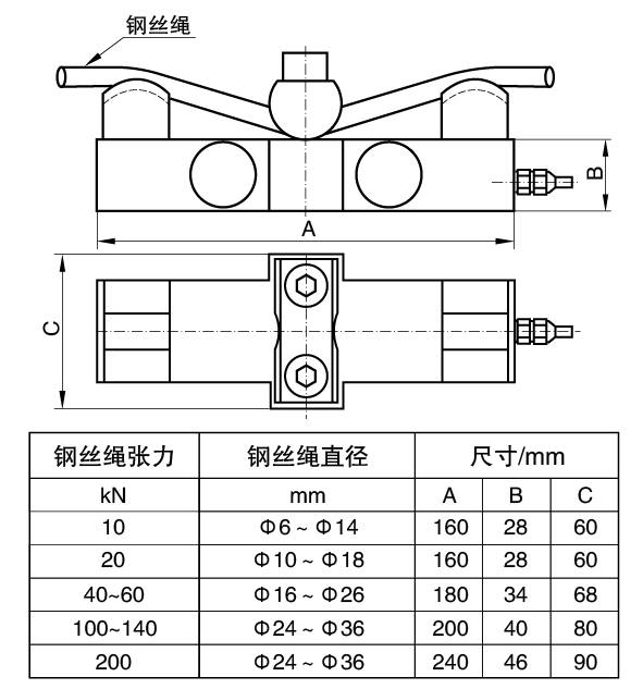 适用于钢丝绳张力的长期测量与监控。