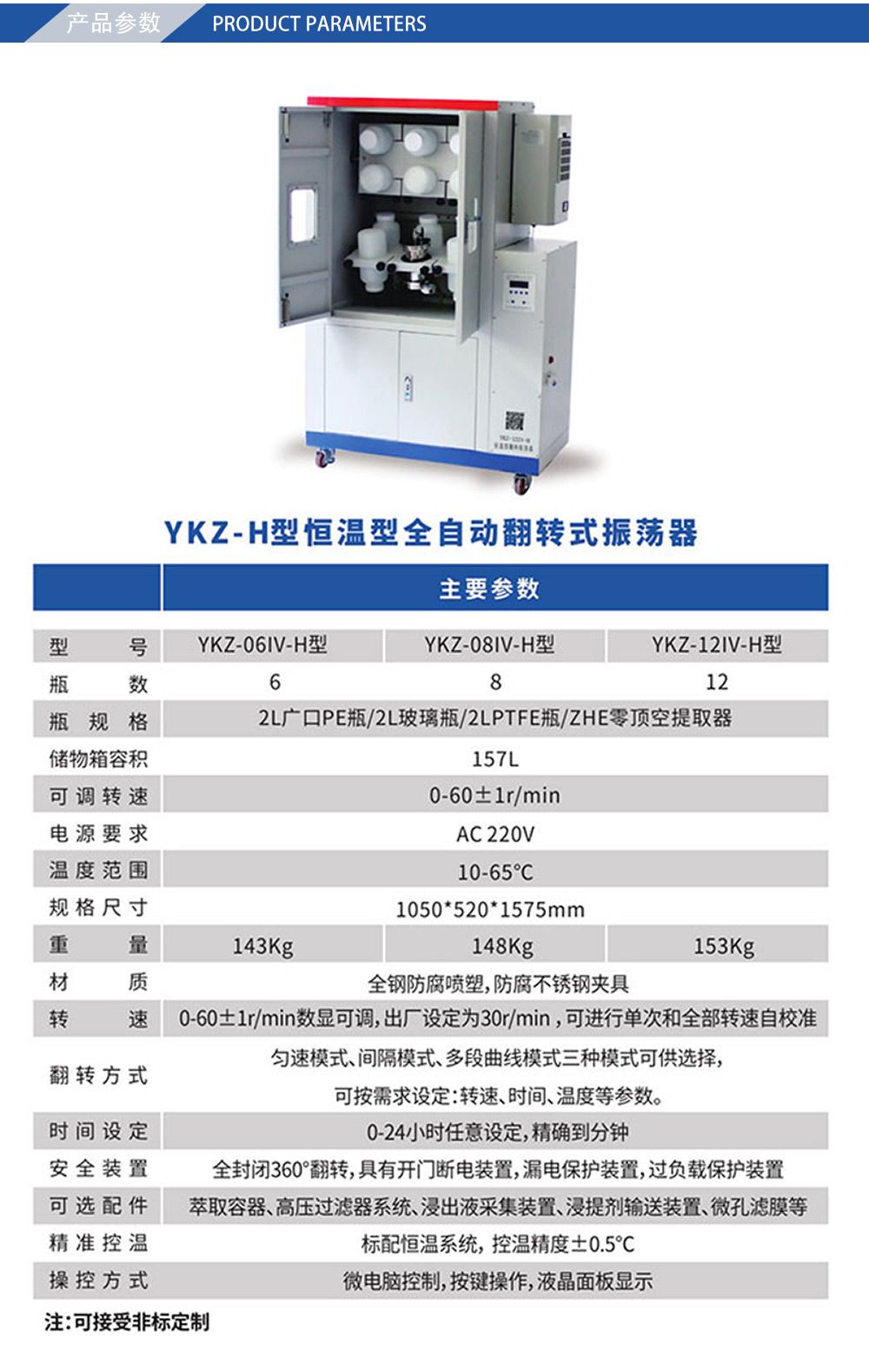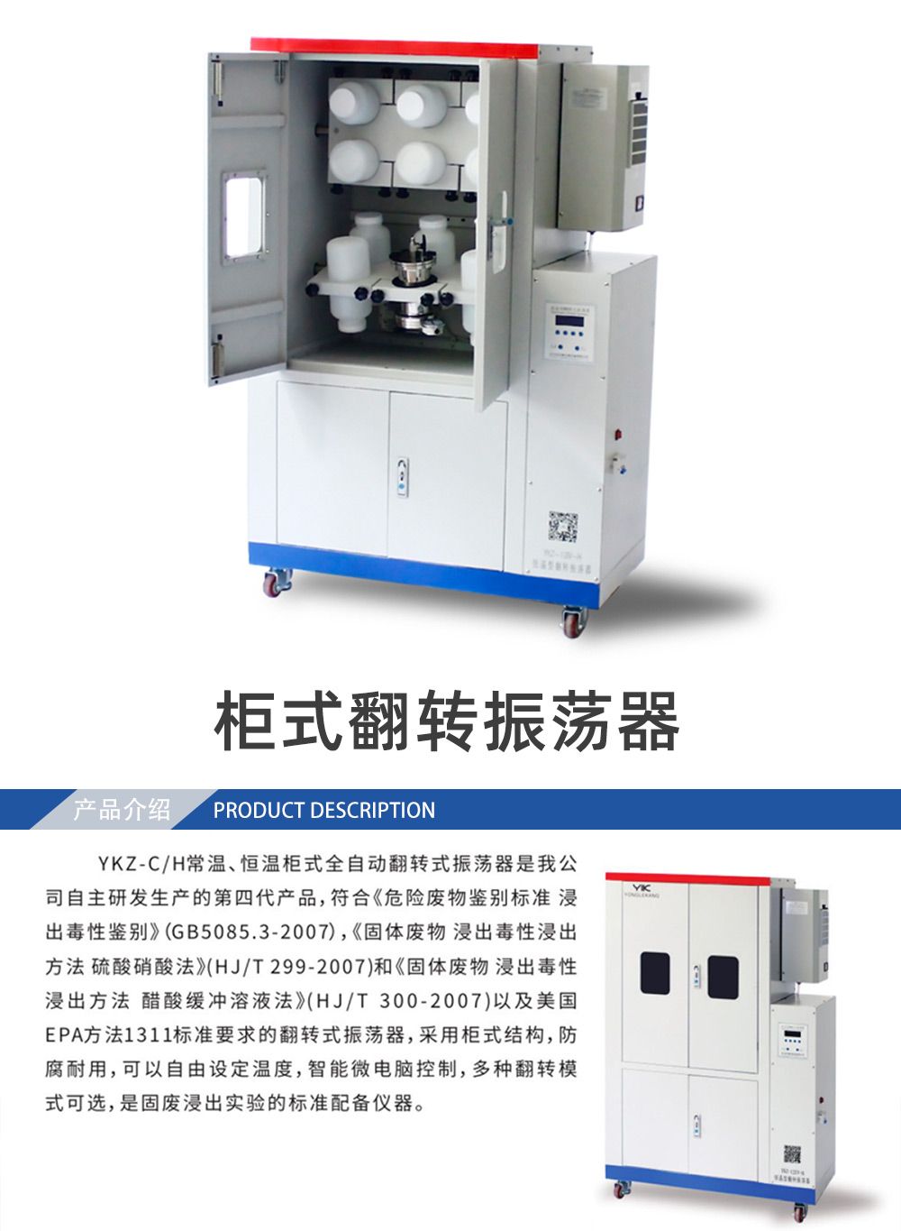 YKZ柜式恒温翻转式振荡器是由永乐康自主研发生产的一款符合《固体废物 浸出毒性浸出方法 硫酸硝酸法》(HJ/T 299-2007)和《固体废物 浸出毒性浸出方法 醋酸缓冲溶液法》(HJ/T 300-2007)的翻转式振荡器。