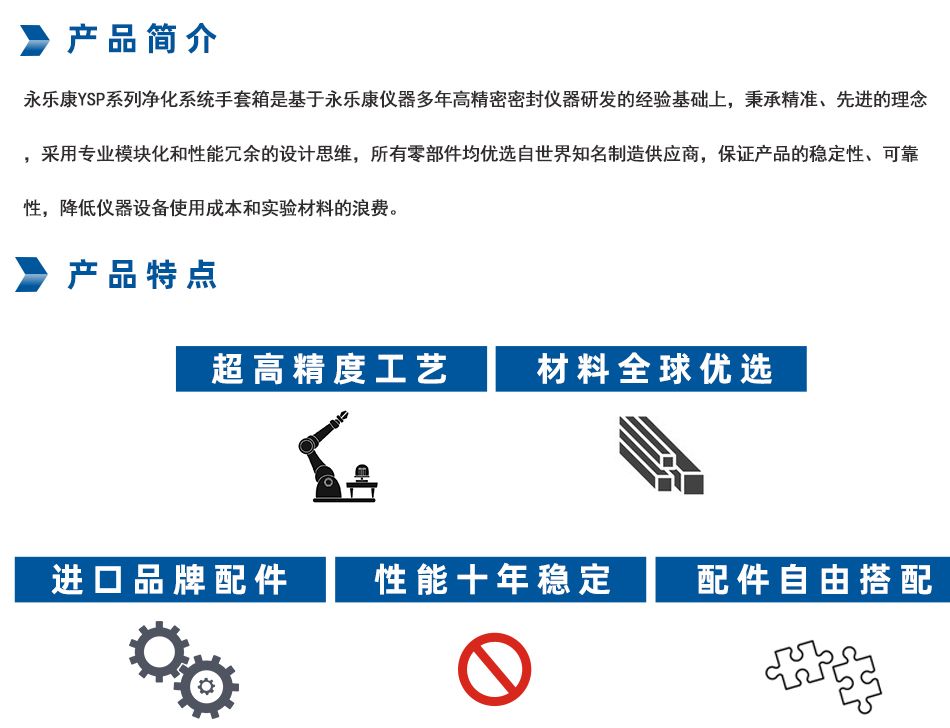 永乐康YSP系列净化系统手套箱是基于永乐康仪器多年高精密密封仪器研发的经验基础上,秉承精准、先进的理念,采用专业模块化和性能冗余的设计思维,所有零部件均优选自世界供应商,保证产品的稳定性、可靠性,降低仪器设备使用成本和实验材料的浪费。