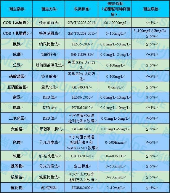②COD高低量程双波长测定:5~150mg/L低波长;100~1000mg/L高波长;