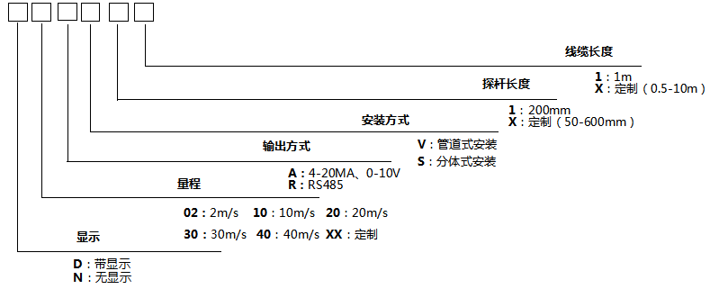 | 量测范围: | 02:2m/s | 10:10m/s 20:20m/s | 30:30m/s 40:40m/s | |