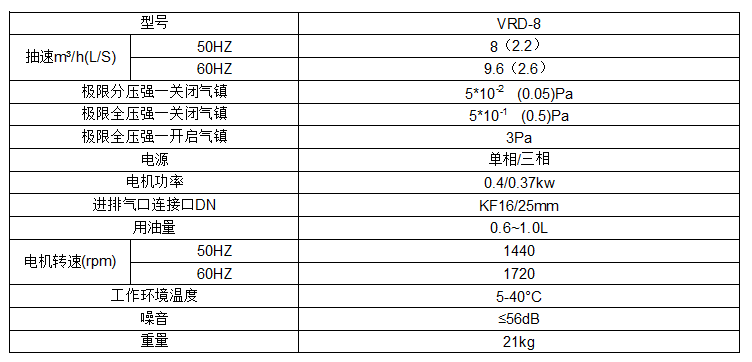 双极旋片式真空泵VRD-8参数: