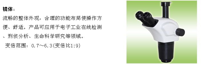 | 变倍范围:0.7~6.3(变倍比:1:9) | |