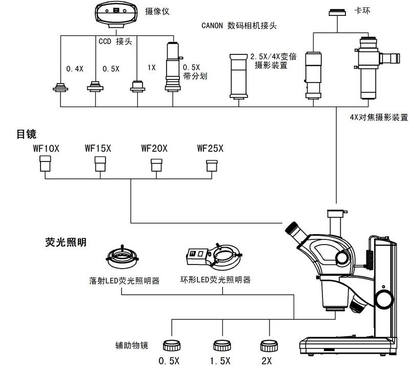 | CCD接头 | 0.4X/0.5X/1X/0.5X带分划 |