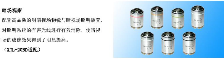 | XJL-20BD | 40X、60X、80X、100X明/暗场物镜 | ||||