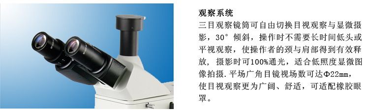 | 目镜筒 | 三目镜30˚倾斜, 可100%通光摄影 | ||