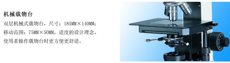 | 载物台 | 双层机械移动式(尺寸:185mmX140mm,移动范围:75mmX50mm) | |