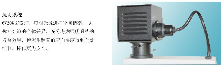 | 照明系统 | 6V20W卤素灯,亮度可调 | |||