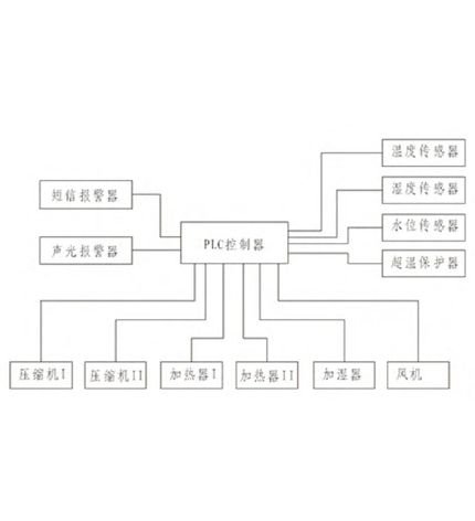 PLC只能控制,液晶显示屏显示和设置控制的温度、湿度、时间、报警温、湿度等参数