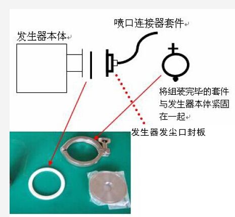 气溶胶发生器均配有喷口连接器,用于将气溶胶发生器产生的气溶胶粒子导入高效过滤器的上游。
