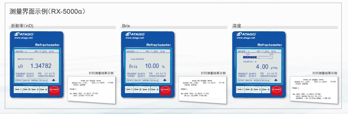 RX-5000α-Plus 是以 RX-5000α 作为标准并提高其精度的进阶型号(Brix显示3位小数,折射率显示5位小数)