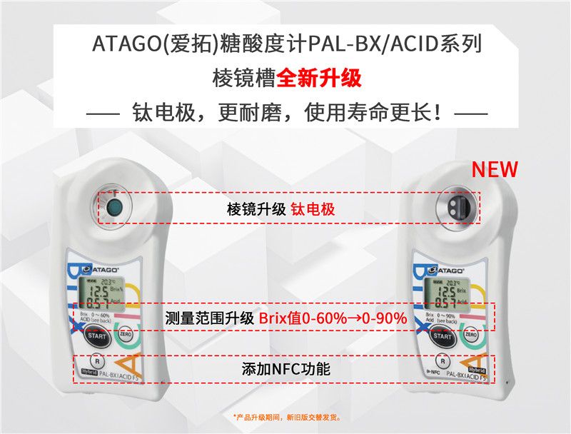 ATAGO(爱拓)PAL-BX/ACID 16(樱桃)糖酸度计,又称为:樱桃糖酸比检测仪,樱桃糖酸一体机,专为测量樱桃(车厘子)的糖度和酸度而设计,带有OFFSET曲线修正功能,可用于对比修正滴定法结果或者其他读数单位产生的数值偏差,使测量结果同步一致,适用于测量樱桃(车里子)及其制品的糖度和酸度含量。