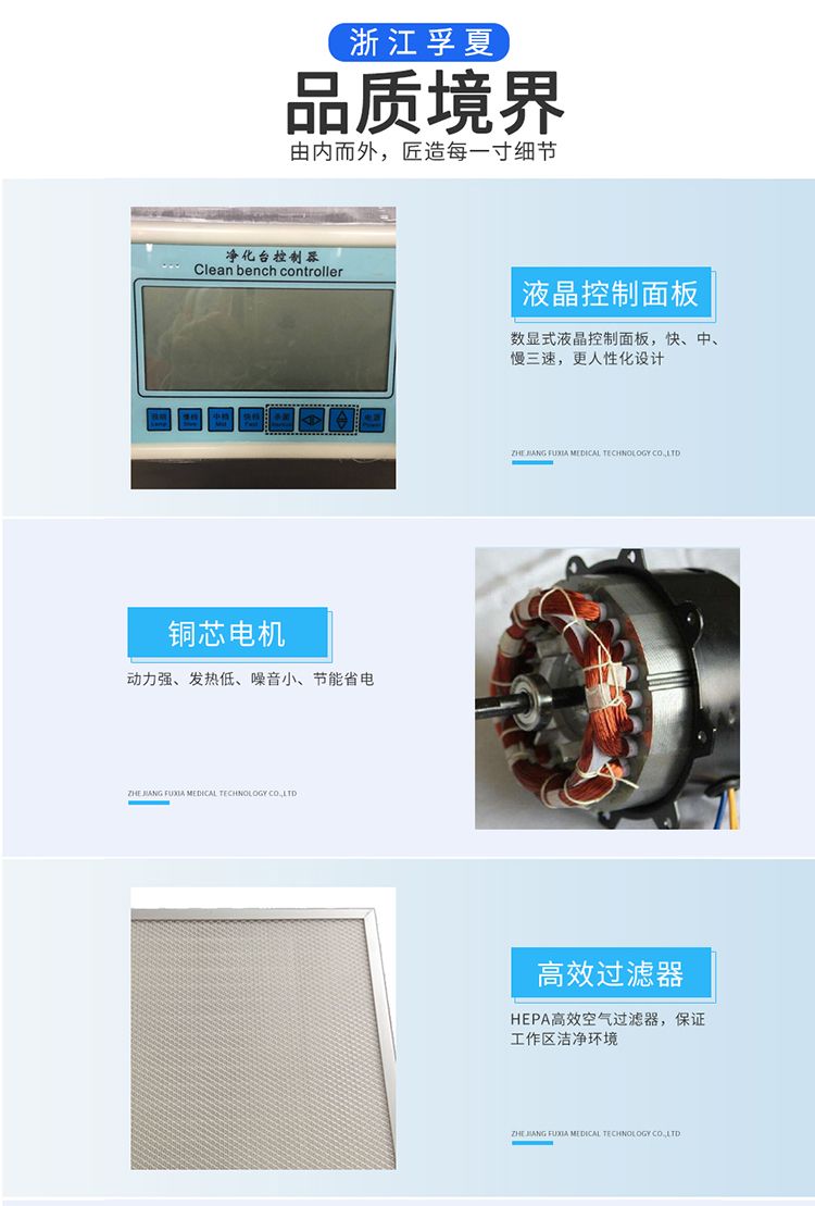1、采用超薄型无隔板高效过滤器,将静压箱尺寸缩至小,再配以铝塑台面和玻璃侧挡板,使整个工作台显得宽敞明亮。